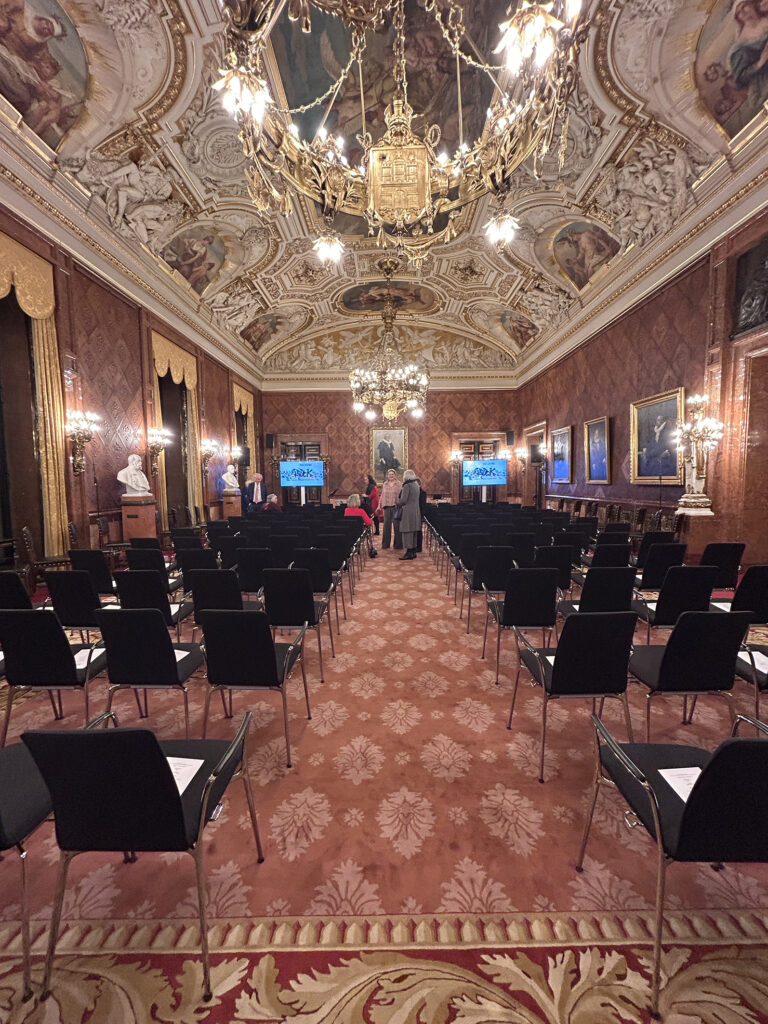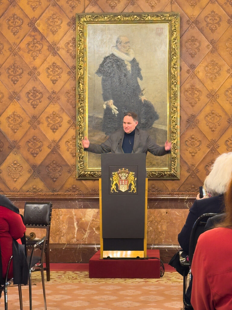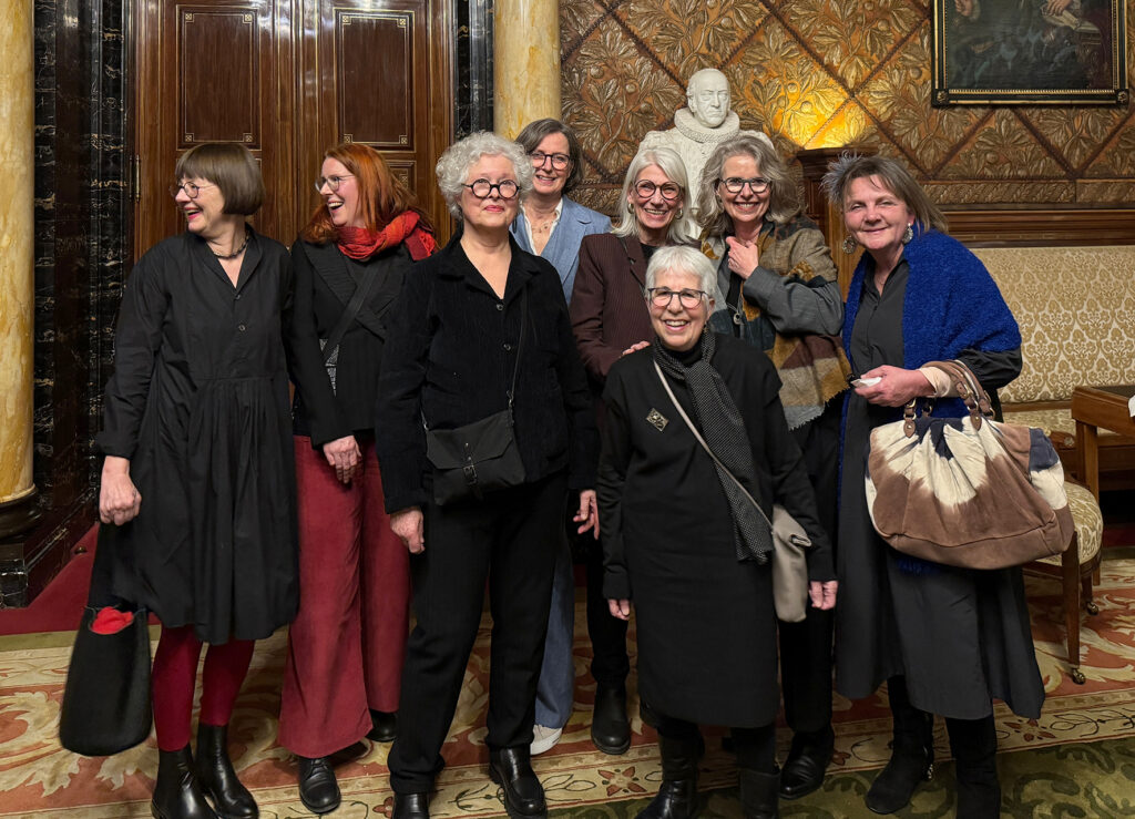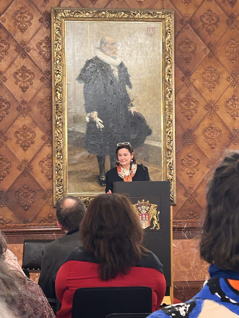 Sabine Rheinhold, 1. Vorsitzende der GEDOK Hamburg: „Der Bürgermeistersaal im Rathaus war vollbesetzt, die Gespräche im Anschluss bei Wein und Laugengebäck so interessiert wie locker. Carsten Brosdas Rede – wie immer mit Witz und durchaus ernsthaften Zwischentönen – war geprägt von Würdigung und Wertschätzung der GEDOK. Das klang auch so in den Reden von Monika Griefahn, langjährige Leiterin des Kulturausschusses im Bundestag, sowie der Begrüßung der GEDOK-Präsidentin Béatrice Portoff, die auch das Grußwort der Schirmherrin des GEDOK-Jubiläums überbrachte. Das Video zur Geschichte der GEDOK (Nanette Zimmermann, GEDOK Freiburg) zeichnet in gleichermaßen poetischen wie grafisch knappen Bildern zugleich ein Porträt der Gründerin Ida Dehmel. Musikalisch bereicherten den Abend Ewelina Nowicka mit einer eigenen Komposition, Marica Lemke-Kern mit einer Vorführung für Gesang, Kristallgläser und Kieselsteine sowie Henrika Grassau und noch einmal Ewelina Nowicka mit Rebecca Clarkes „Lullaby“.“