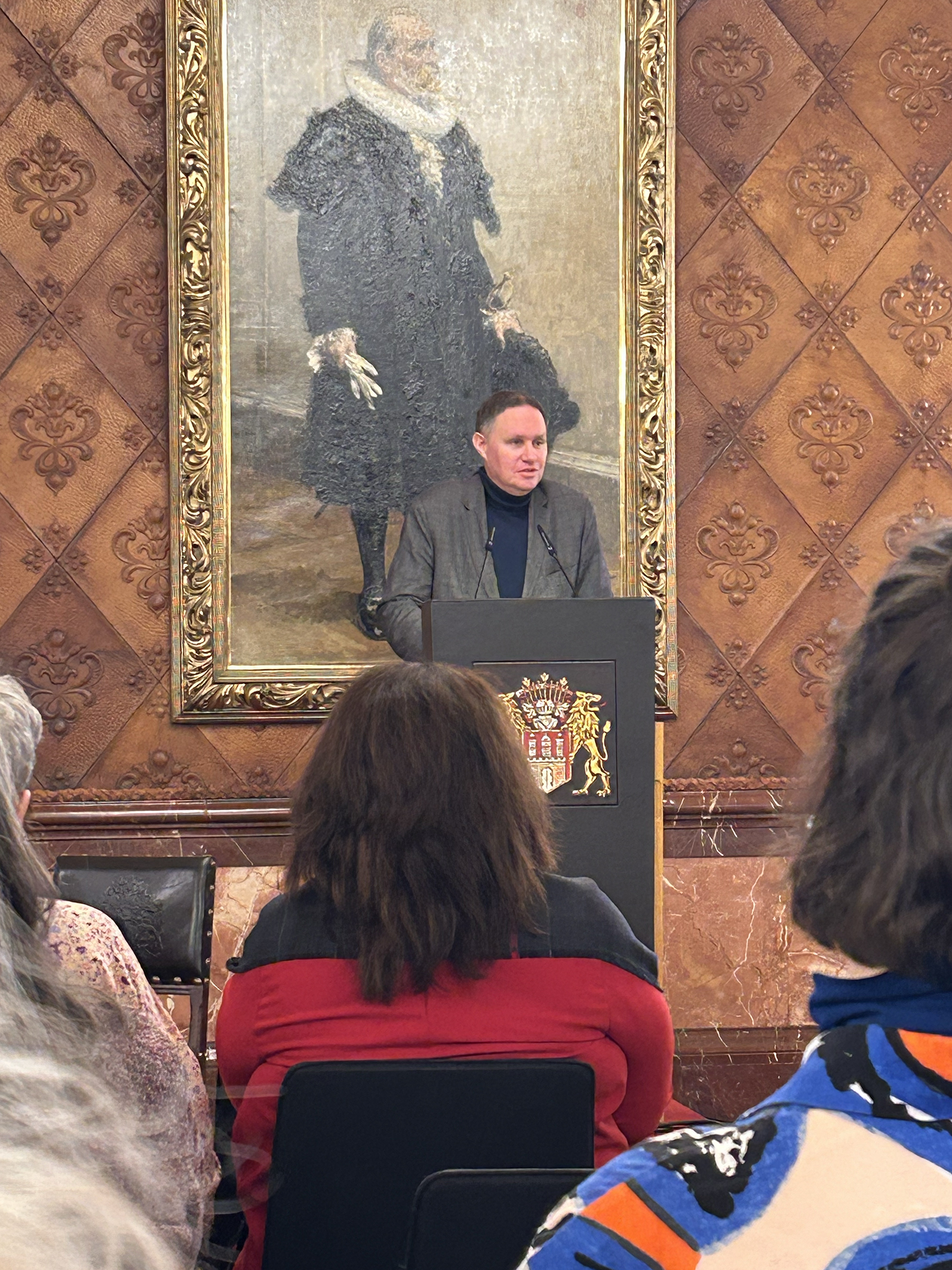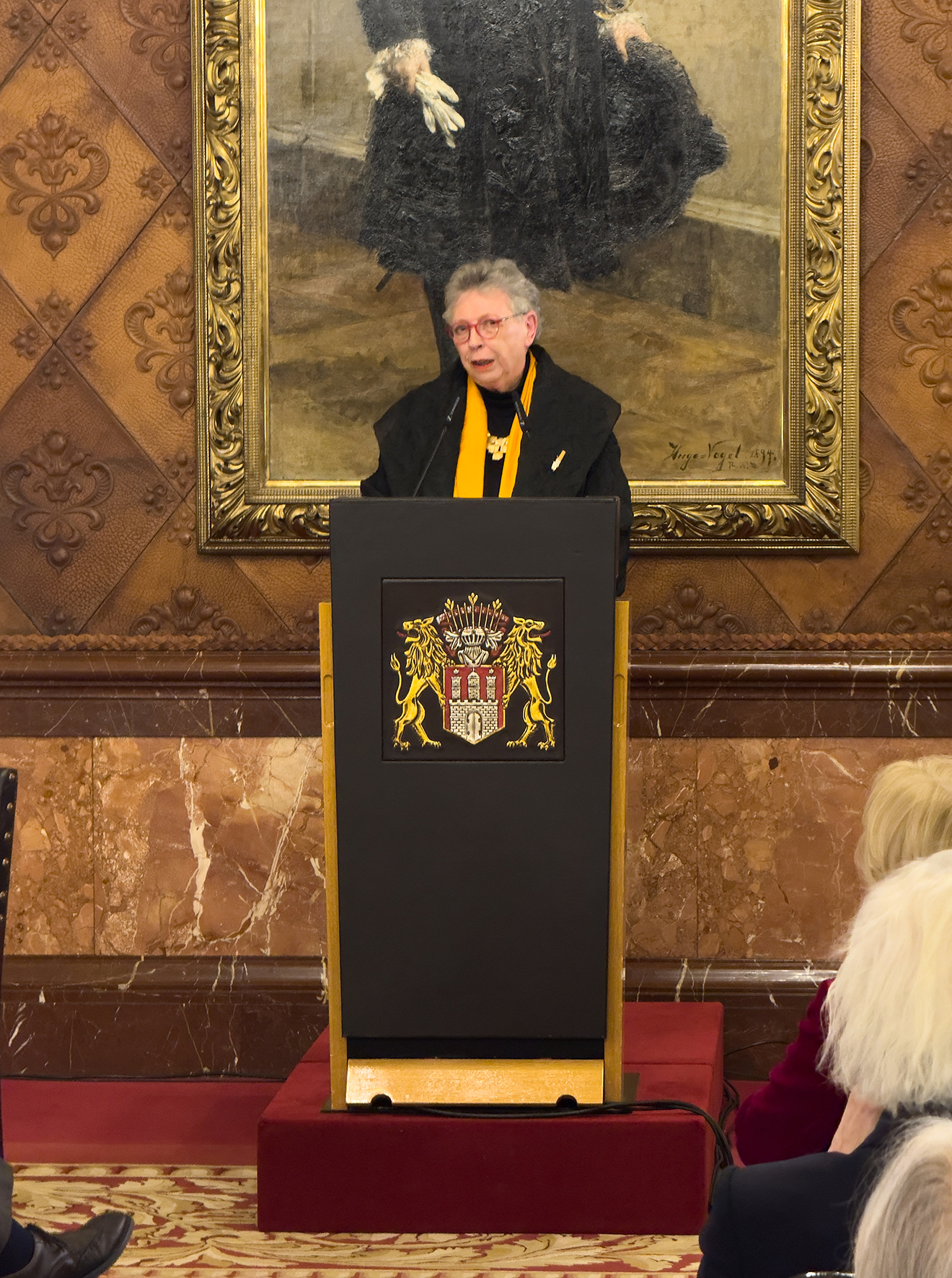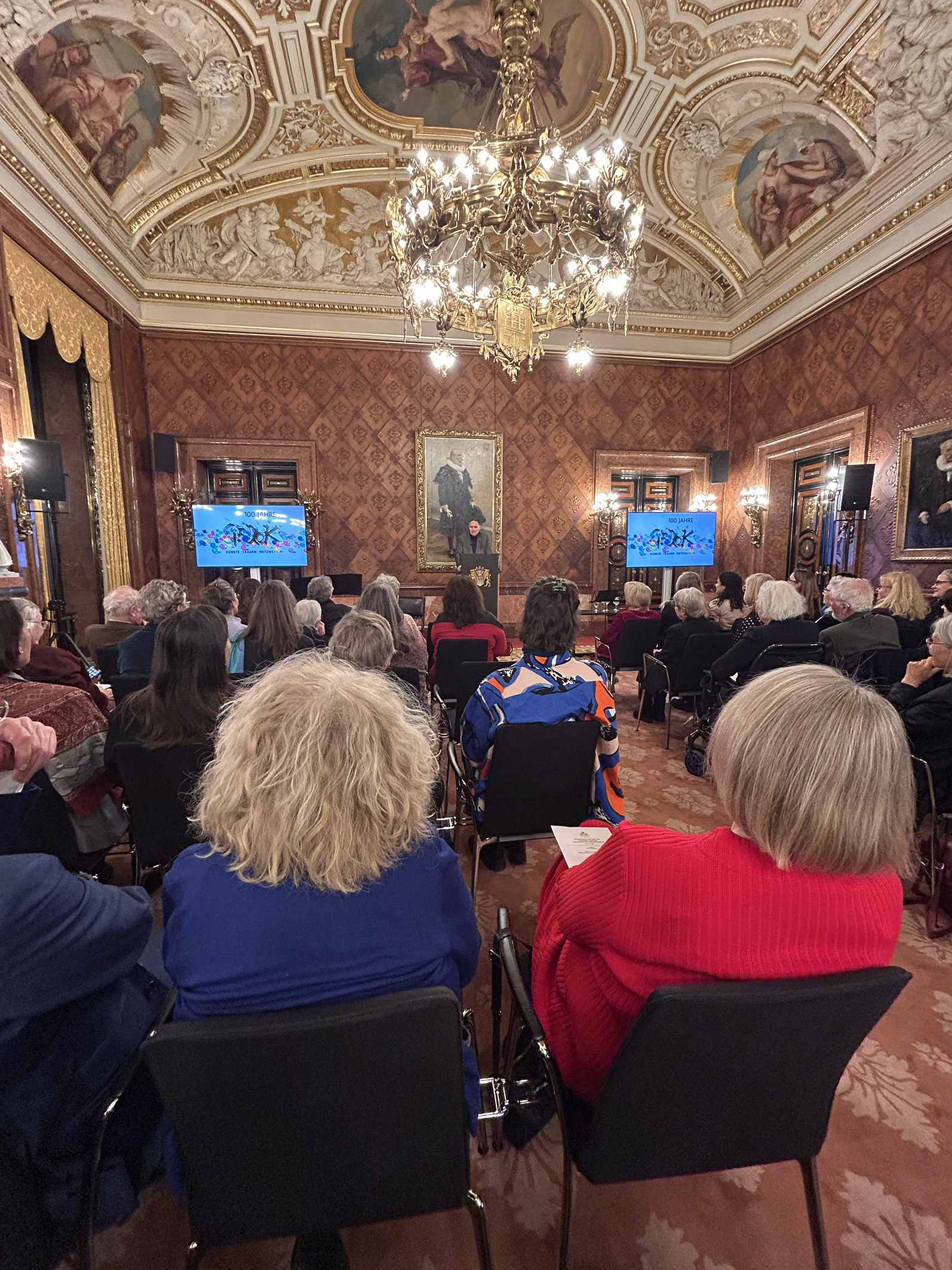 Sabine Rheinhold, 1. Vorsitzende der GEDOK Hamburg: „Der Bürgermeistersaal im Rathaus war vollbesetzt, die Gespräche im Anschluss bei Wein und Laugengebäck so interessiert wie locker. Carsten Brosdas Rede – wie immer mit Witz und durchaus ernsthaften Zwischentönen – war geprägt von Würdigung und Wertschätzung der GEDOK. Das klang auch so in den Reden von Monika Griefahn, langjährige Leiterin des Kulturausschusses im Bundestag, sowie der Begrüßung der GEDOK-Präsidentin Béatrice Portoff, die auch das Grußwort der Schirmherrin des GEDOK-Jubiläums überbrachte. Das Video zur Geschichte der GEDOK (Nanette Zimmermann, GEDOK Freiburg) zeichnet in gleichermaßen poetischen wie grafisch knappen Bildern zugleich ein Porträt der Gründerin Ida Dehmel. Musikalisch bereicherten den Abend Ewelina Nowicka mit einer eigenen Komposition, Marica Lemke-Kern mit einer Vorführung für Gesang, Kristallgläser und Kieselsteine sowie Henrika Grassau und noch einmal Ewelina Nowicka mit Rebecca Clarkes „Lullaby“.“